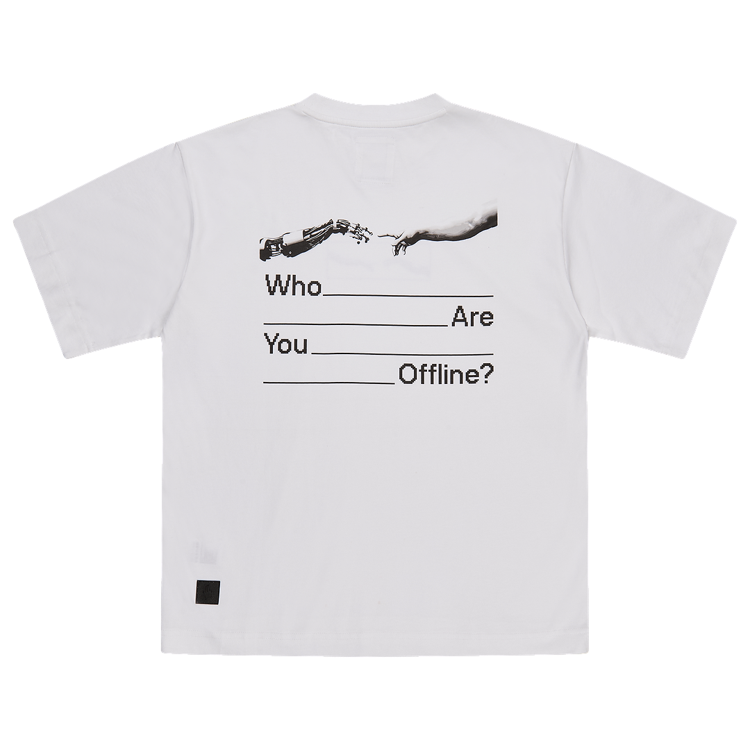 Regular price $40.00A statement piece for the digital age. The BASEMENT DWE//ER Offline T-Shirt is made from heavyweight cotton with a relaxed fit for all-day comfort. It features a full needle rib collar and waterbased screen prints on the front and back, with a unique faux leather patch at the back hem.Our second visit to the question, "Who are you offline?", initially spawning from Alex's realisation that he perhaps actualized in reverse - the gaming world and social space being where he grew up and it's not uncommon. Playing catch up offline, but not forgetting the online space where we first found comfort and ourselves.