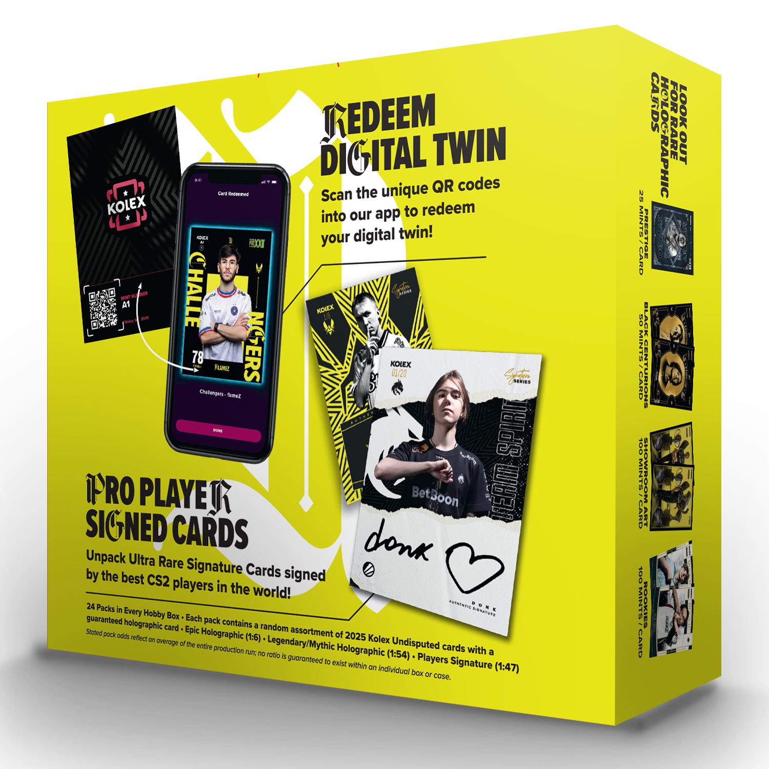 Every Kolex trading card is one-of-a-kind, featuring its own unique serial number and QR code that unlocks your digital twin. Track your collection, show it off in your digital library, and trade or sell your collectibles seamlessly across the Kolex web and mobile apps!